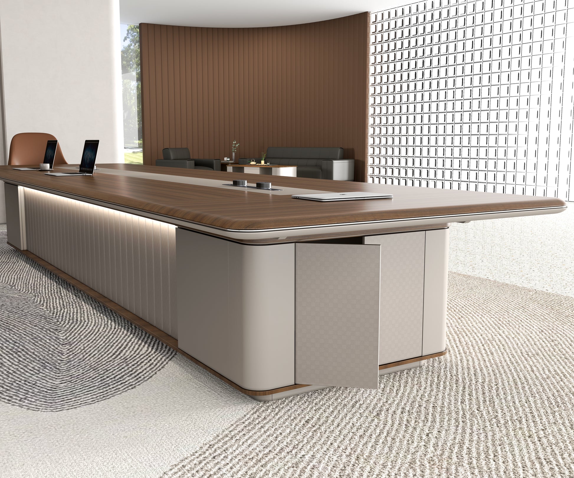 Spacious dimensions and refined design make it ideal for high-level meetings and collaborative decision-making environments.